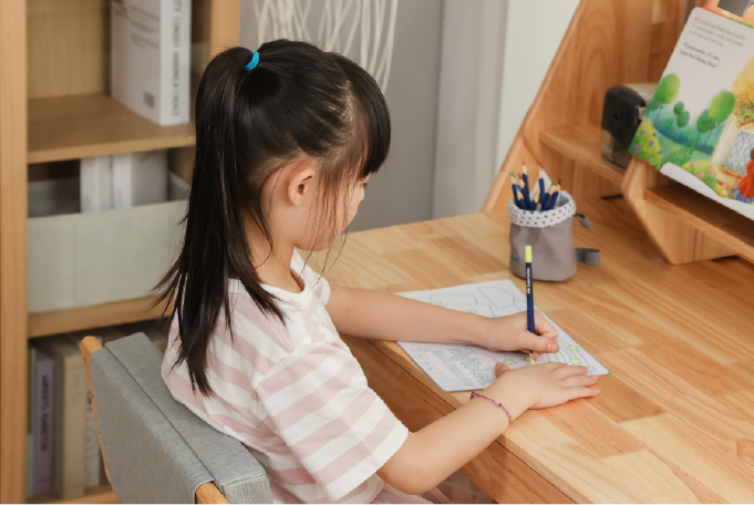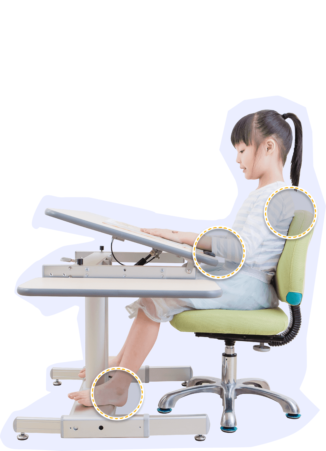 當肩膀自然下垂,不高聳或歪斜,雙手可舒適且自然地放在書桌上,